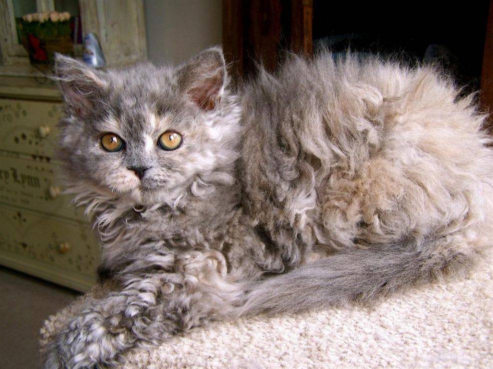 Что касается окраса, длины шерстинок и степени их завитости, то эти качества могут отличаться у разных представителей породы. Стандарт допускает и длинношерстные, и короткошерстные разновидности. У всех кошек легкая пружинистая шерсть, которая может быть волнистой или кудрявой. Самые сильные завитки растут у кошек на животе, около ушей и на шее.