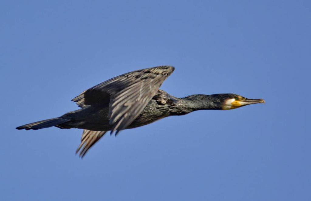 Задумались над тем, на какую птицу можно охотиться осенью? Ярким представителем пернатых является большой баклан. Это довольно крупная птица из семейства баклановых. В размерах взрослую особь можно сравнить с серым гусем: длина – от 80 до 90 сантиметров, размах крыльев – 130-160 сантиметров, масса – от 1,7 до 3 килограмм. Оперение преимущественно черное, с характерным металлическим блеском. Лишь горло, шея и щеки имеют белый окрас.