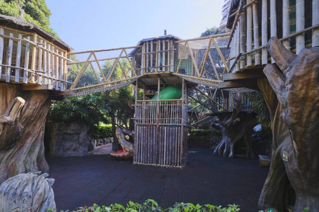 Интересная зона для развлечений обустроена в виде непроходимых тропических джунглей. Территория оснащена американской горкой, канатными туннелями и другими аттракционами.