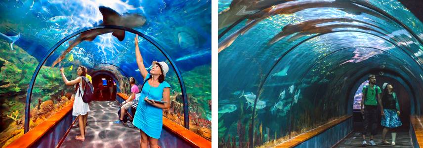 Это единственный в мире мини-океанариум, где в больших масштабах представлены коралловые рифы. На территории аквариума для посетителей создан туннель, который проходит сквозь толщи воды и составляет в длину 18 м. В нем можно рассмотреть всех морских, речных жителей и обитателей океанов.