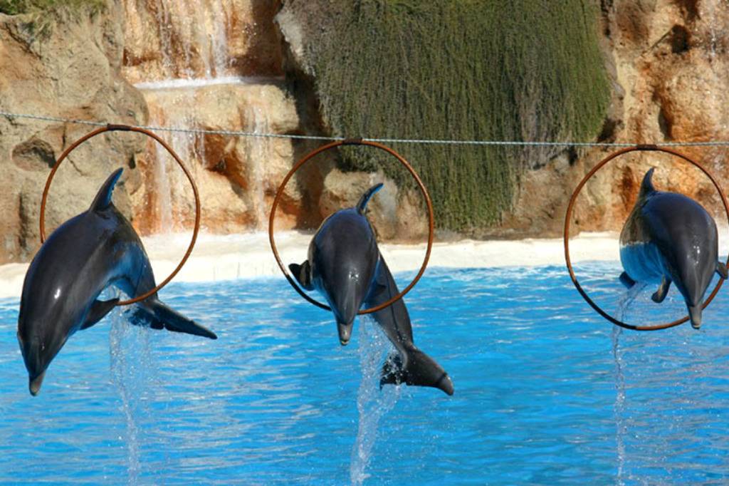 - Дельфины. Одним из этапов развития Лоро парка считается появление дельфинария, в котором живут и выступают афалины – умнейшие морские млекопитающие.