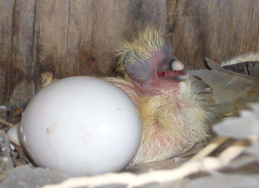 Голуби поочередно высаживают яйца на протяжении 16-19 суток, но у некоторых пород данный период может продлиться до 29 дней. Птенцы появятся на свет беспомощными и слепыми, но уже через несколько часов они смогут принимать пищу от родителей.