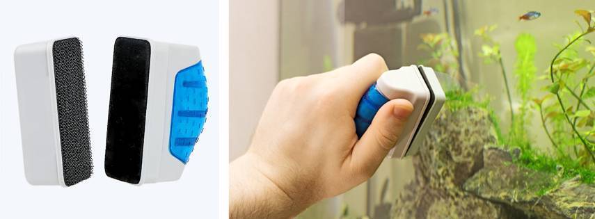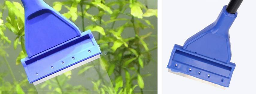 Для очистки внутренней части аквариумных стекол используют скребки: