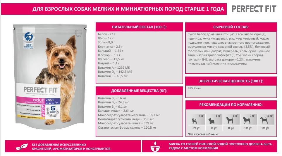 Для взрослых собак старше 1 года можно подобрать рационы из линейки Perfect Fit, они также существуют в двух разновидностях – для собак мелких и миниатюрных пород и для собак средних и крупных пород.