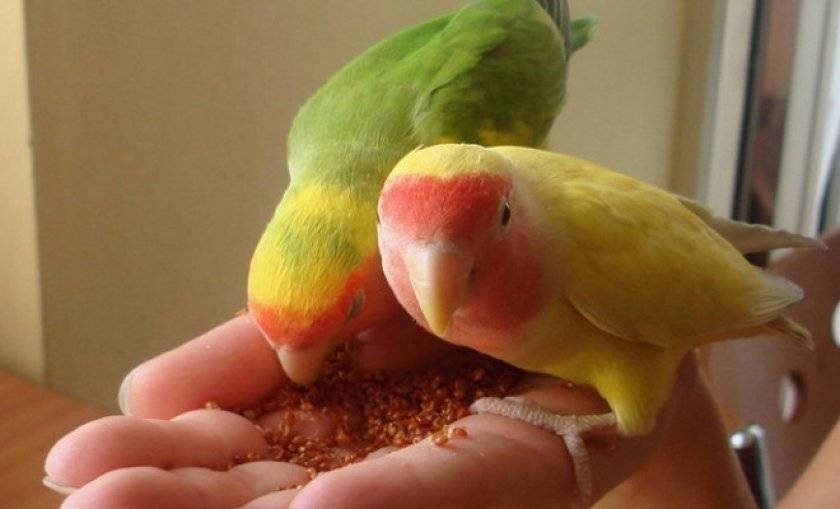 Для кормления неразлучников подходит зерновой корм для средних попугаев и не подходит корм для волнистых попугаев.