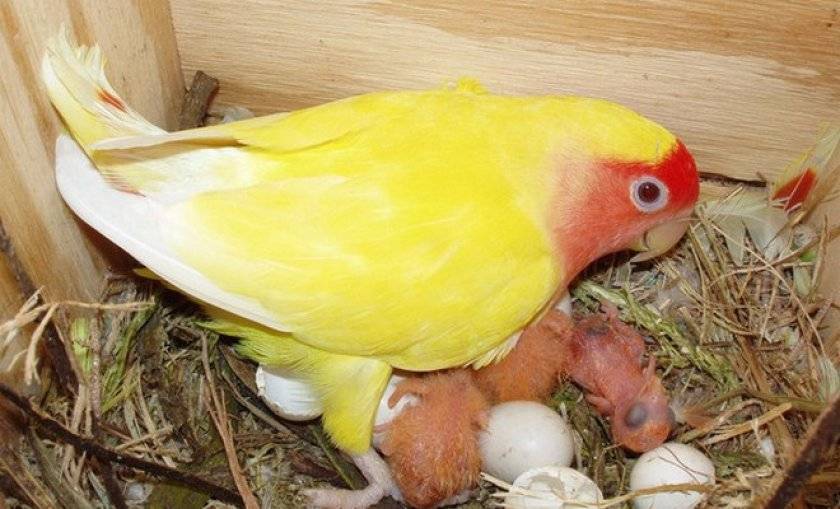 Для этого клетка должна обязательно быть оборудована специальным домиком для места кладки яиц, а также птицам должны быть созданы максимально комфортные условия для развития отношений: максимум вкусной и полезной еды, минимум стрессов и переездов.