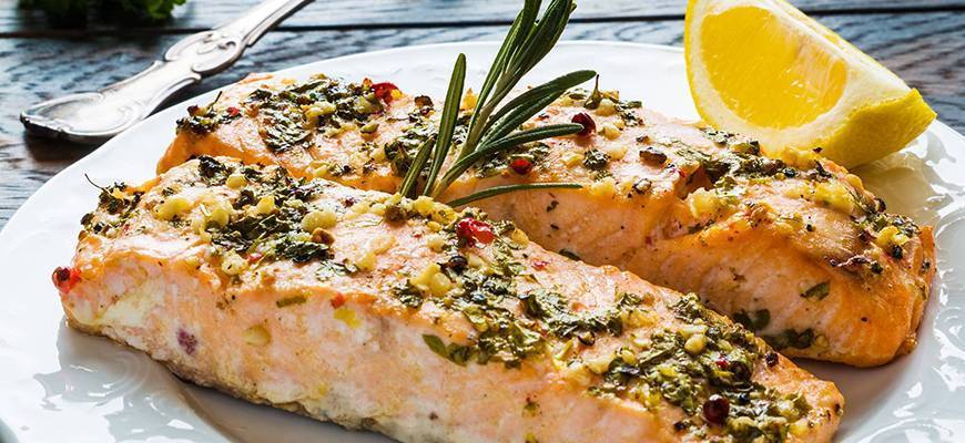 Этот способ приготовления предполагает запекание нерки в духовке. Для блюда необходимо взять стейки или филе рыбы, которое разрезается на одинаковые части.
