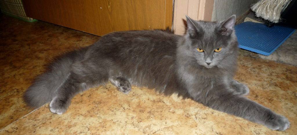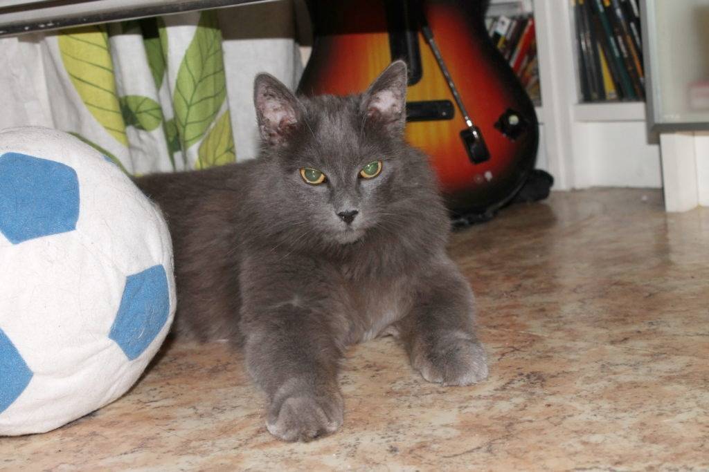 - Ген, отвечающий за длинную шерсть, является рецессивным, а его носители – русские голубые кошки. Чтобы получить котят нибелунгов, необязательно скрещивать между собой двух представителей данной породы. Для этого можно повязать их с русской голубой. Туманные кошки могут родиться и в результате скрещивания двух носителей рецессивного гена. Правда, в этом случае в помете появляются и пушистые, и гладкошерстные котята.