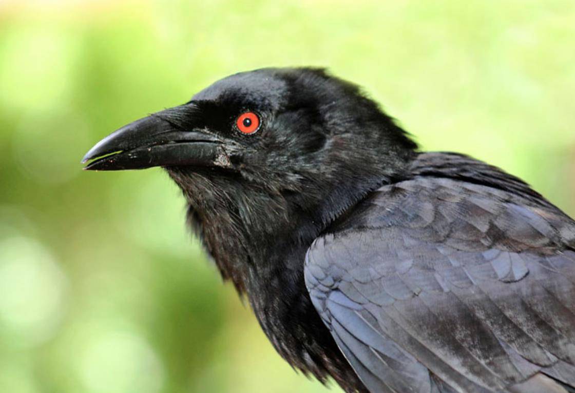 - Глаза круглые, большие, с красно-коричневой радужкой. Зрение у ворона отличное, птица видит предметы до мельчайших подробностей со стометрового расстояния.