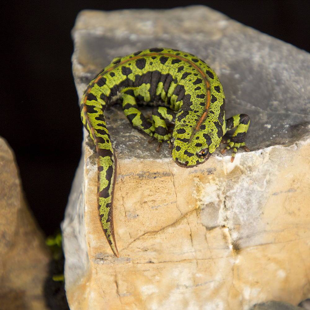 Мраморный тритон лучше себя чувствует вне воды. Он готов нежиться под лампой долгое время, напоминая ящерицу. Однако в брачный период спина самца по-прежнему получает ребристый характер.