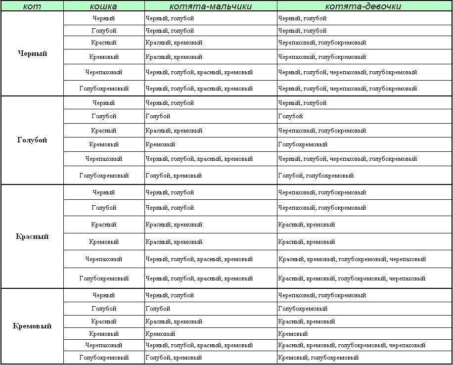 Чтобы понимать, какой цвет получится в результате скрещивания животных, заводчики используют таблицу-калькулятор. С ее помощью можно предположить с очень большой вероятностью, какой цвет унаследует потомство породистой парочки.