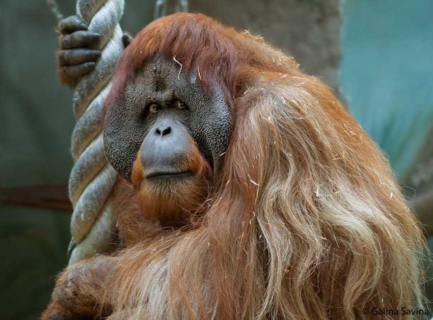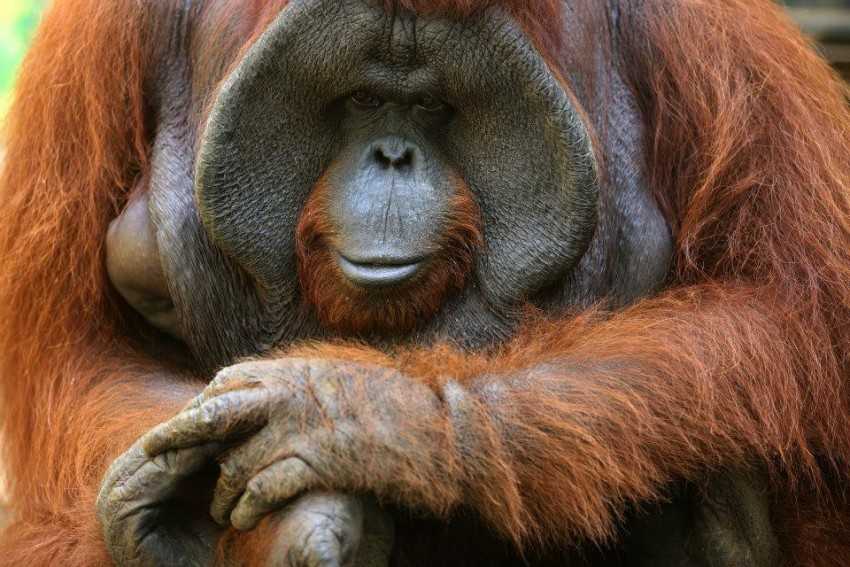 Внешне человекообразная обезьяна орангутан выглядит немного непривычно: