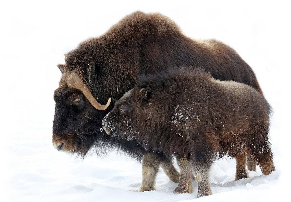 Овцебык – это парнокопытное, травоядное животное. Оно сумело приспособиться и отлично выжить в климатических условиях холодной Арктики. В этих местах теплый сезон длится всего несколько недель, затем снова наступает зима, снежные бури, ветра и сильные морозы. В этот период основным источником корма является сухая растительность, которую животные добывают из-под толстого слоя снежного покрова копытом.