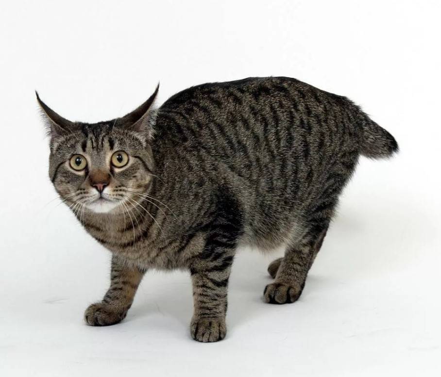 В результате вязки этих животных на свет появился котенок-девочка. Ее назвали Пикси, в переводе — эльф или фея. Котенок унаследовал от своих родителей полидактильные конечности, хвост-боб и короткую серую, в темных пятнышках с рыжим отливом, густую шерстку. Мордочкой походил на рысь. Пикси стала родоначальницей новой породы кошек, которую официально зарегистрировали в 1985 г.