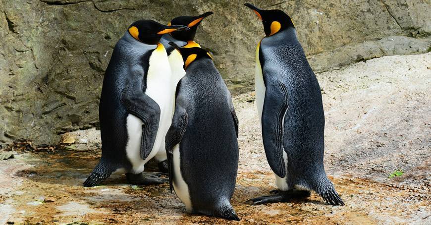 - Обитающие в Антарктиде пингвины во время сильных холодов собираются в группы, чтобы погреться. Внутри плотно стоящей стаи температура поднимается до +30 градусов. Птицы греются поочередно: находящиеся по краям особи перемещаются в центр и обратно.