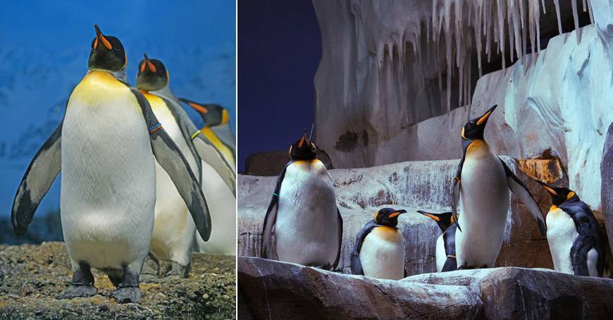 12. Каких-то значительных отличительных признаков у самцов и самок королевских пингвинов нет. Можно только отметить, что последние несколько мельче самцов, но и то это не может быть точным показателем.