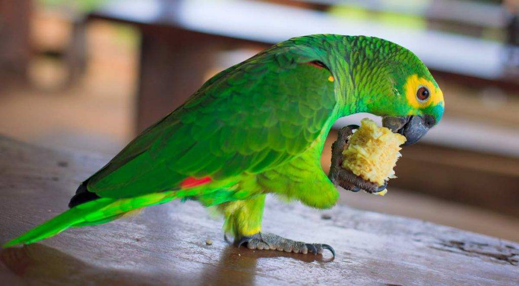 Питание синелобого амазона.