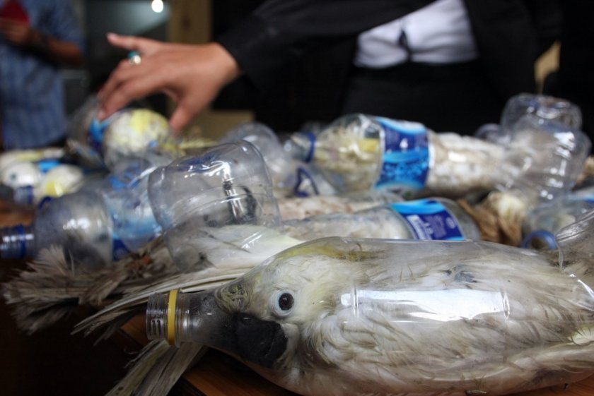 Однажды в Индонезии у контрабандистов были изъяты полицией более 20 попугаев, которых пытались перевести в пластиковых бутылках.