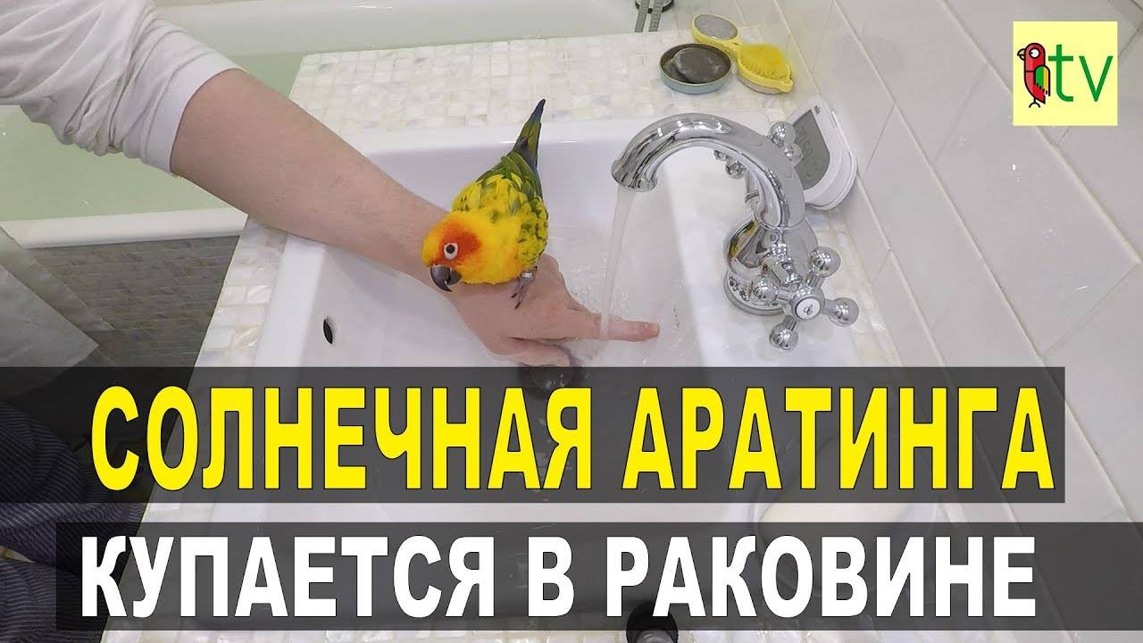 Солнечная Аратинга купается в раковине.