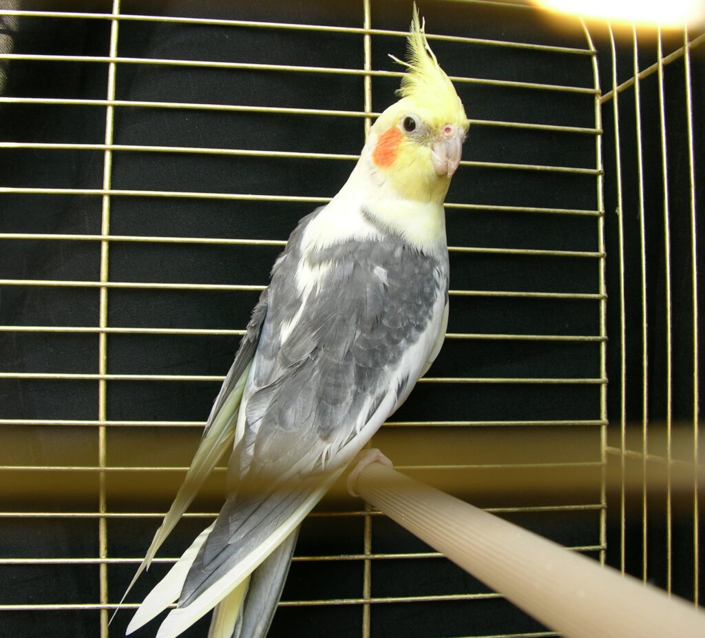 - Светло-серый. Цвет оперения варьируется между светлым и тёмно-серым. На голове присутствует жёлтый хохолок. Кроме того, это попугай с красными щеками. От природной окраски морфу отличает присутствие в оперении более светлых тонов.