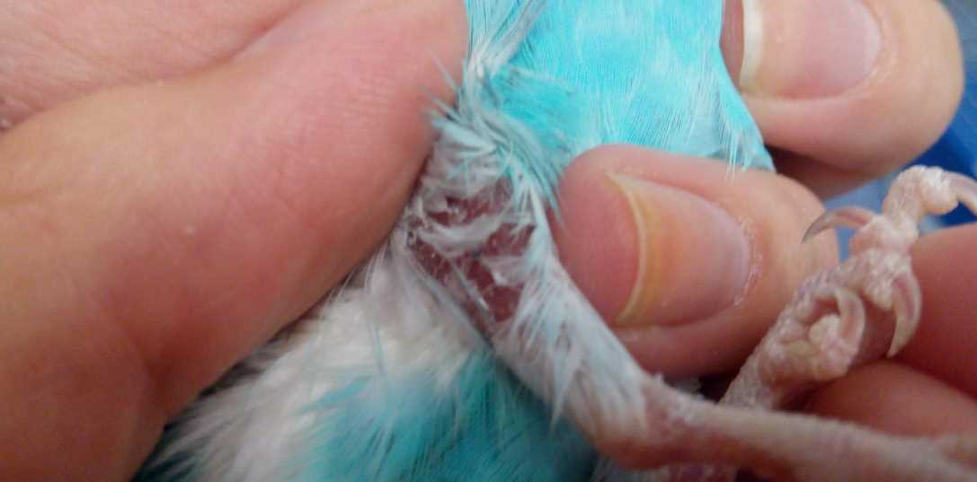 Судить о заражении можно и по общему виду. Паразиты прогрызают в пере мелкие отверстия, и спустя некоторое время становится заметно, что с одежкой попугая что-то не так.