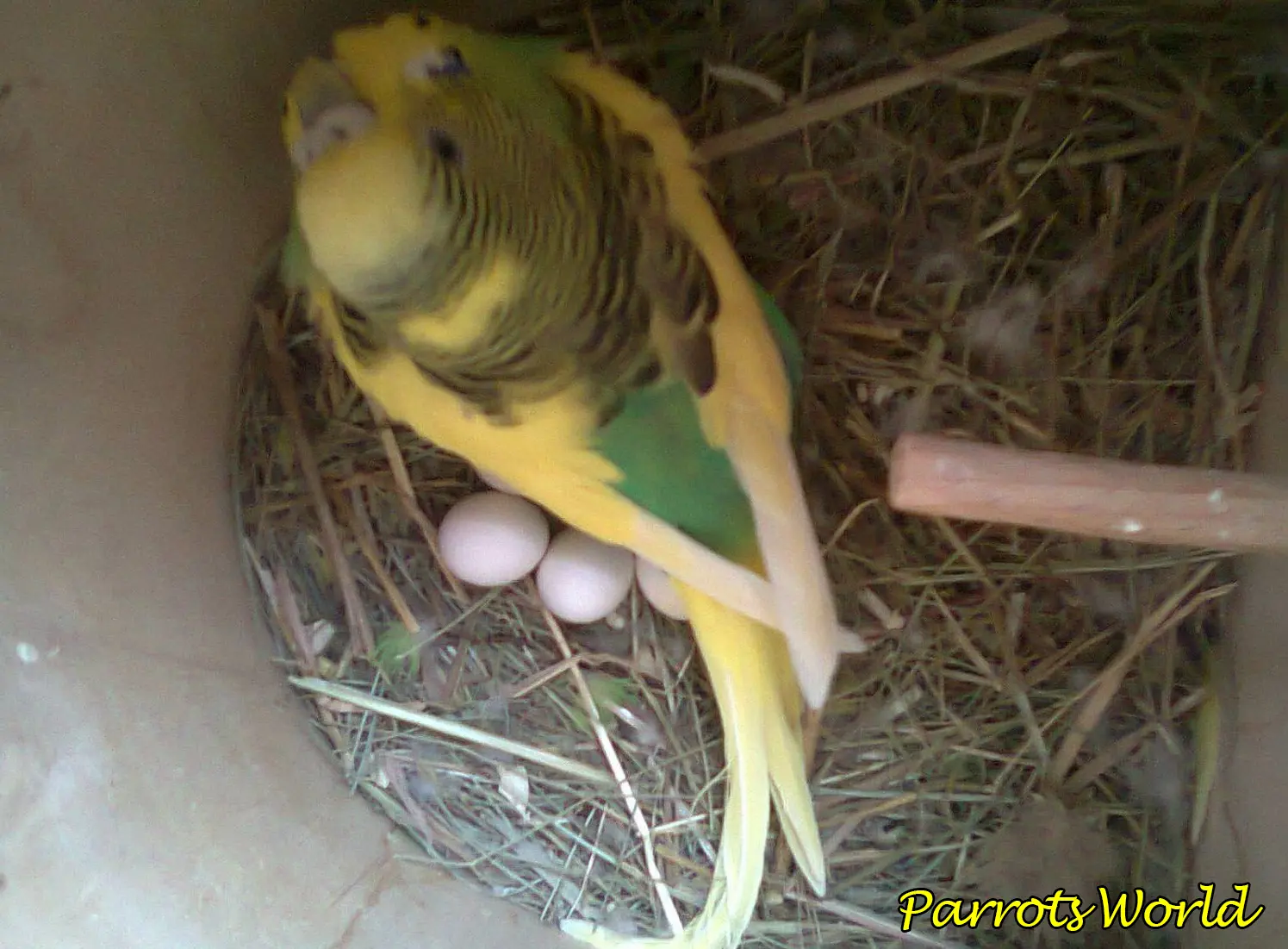 Яйца появляются по одному ежедневно или через 1 – 2 дня. В кладке у волнистых попугаев обычно насчитывается 4 – 6 яиц, иногда их количество у молодых особей может достигать 9.