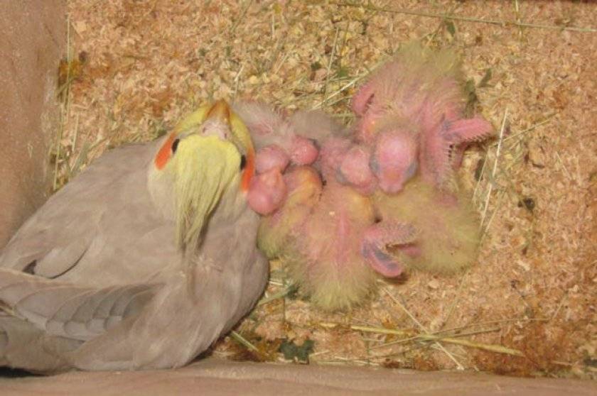 И вот свершилось – в домике зашевелились первые птенцы. Слабые и хрупкие, они требуют внимательного ухода, как корм и тепло. Впервые дни самка сама кормит желторотиков жидкой субстанцией – «птичьим молоком», а во время прикорма, следует разнообразить их рацион вареным яйцом, а маме-нимфе предложить немного проваренных зерен.