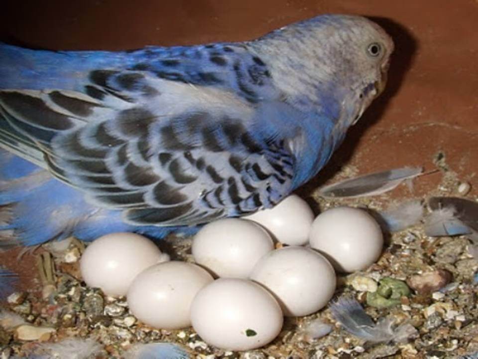 Спустя две недели после спаривания появляется первое яйцо. Как только их количество достигнет пяти штук, самка начинает высиживание. Размер пернатого обратно пропорционален количеству яиц в кадке. В среднем самочка греет яйца от восемнадцати до тридцати пяти дней. Точное время зависит от условий в доме и размера пернатого. Самец чаще всего только подкармливают молодую маму, а в некоторых случаях еще и заменяет ее в роли наседки.