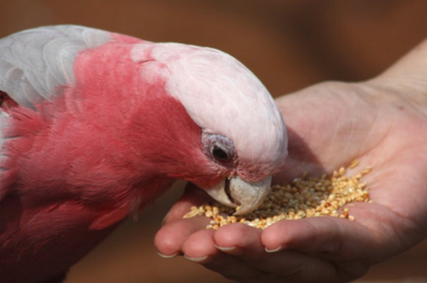 Запрещёнными продуктами питания для розового какаду являются всевозможные сладости, петрушка, авокадо, молочные продукты, пища с собственного стола.