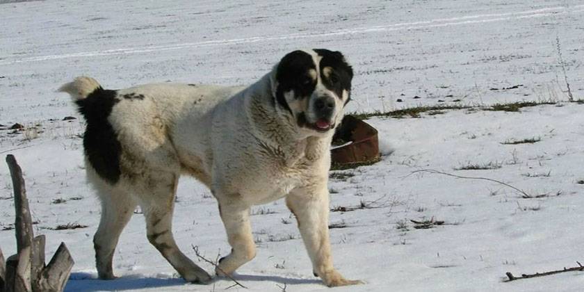 Он же среднеазиатская овчарка, он же туркменский волкодав, в холке достигает 80 см и весит до 80 кг. Бесстрашный защитник и верный охранник обладает своенравным характером, поэтому начинать дрессировать и воспитывать алабаев следует уже в щенячьем возрасте. Представители данной породы очень любят детей и благосклонно относятся к другим животным, проживающими с ними на одной территории. Это ревностный охранник, он будет атаковать первым, если чужак нарушит установленные им границы. Кстати, самой большой собакой в России считается именно алабай по кличке Бульдозер, его рост составлял 1,50 м, а вес – 130 кг. Своими размерами этот пёс был больше стандартной среднеазиатской овчарки в два раза.