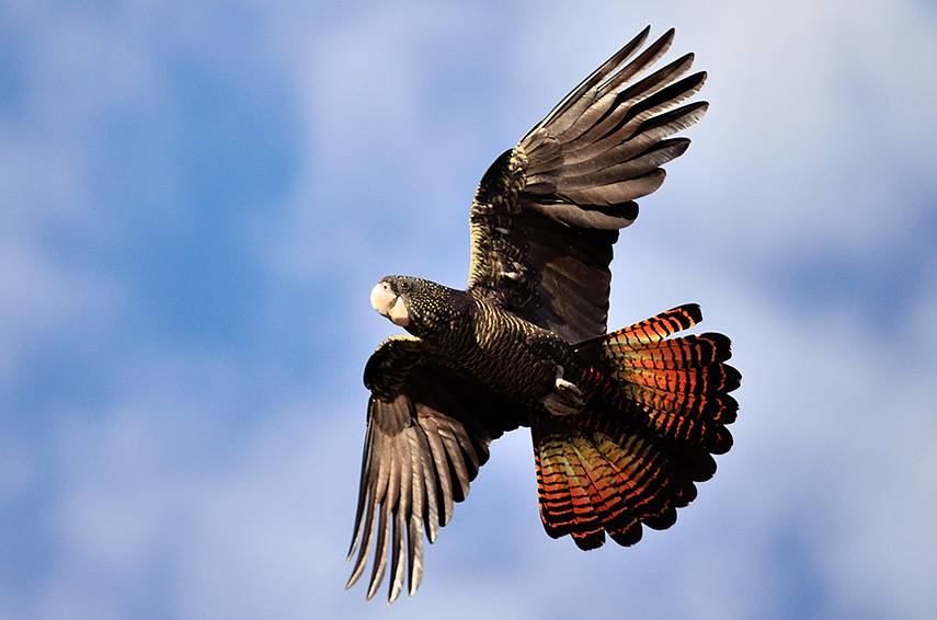 Очень редкая и по праву красивейшая из семейства какаду, одна их самых дорогостоящих птиц, обитающих в домашних условиях – Траурный какаду Бэнкса, названный так в честь естествоиспытателя – англичанина сэра Джозефа Банкса (натуралист). Черные какаду обитают в прибрежных, тропических и эвкалиптовых лесах северной и западной Австралии. Продолжительность попугаев данного вида аж более ста лет!
