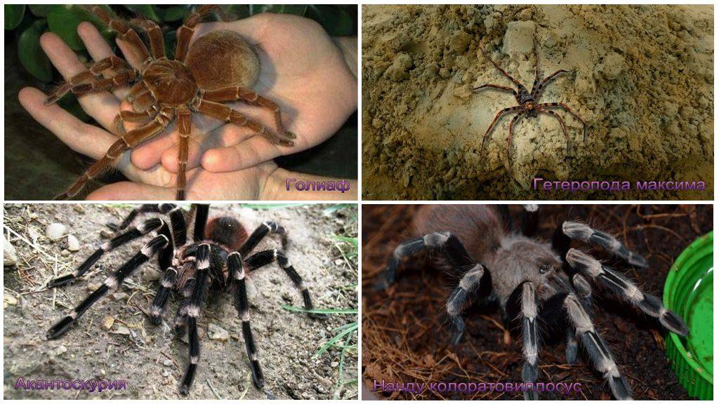 Помимо Theraphosa blondi и Heteropoda maxima, большими считаются и другие виды. Это гигантский охотник, черный бразильский птицеед, лошадиный или верблюжий пауки, тегенария стенная, геркулесовый бабуин.