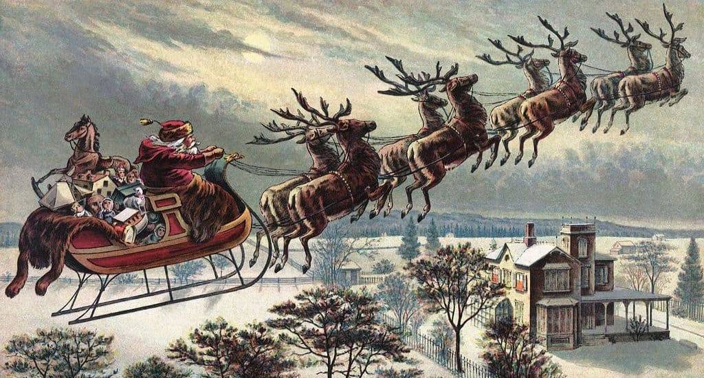 Оленей впервые связали с Рождеством благодаря поэме «Визит Святого Николая» (также известную как «Ночь перед Рождеством»), которую в 1823 году написал американский писатель Клемент Кларк Мур. Стихотворение получило огромную популярность, и сегодня воспринимается как легенда. Поэму можно назвать первоисточником сведений о Санта-Клаусе. Сейчас Санта и все, что с ним связано, являются главными символами Рождества в Америке и Западной Европе.