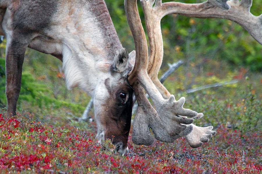Меняющие время от времени места обитания стада северных оленей питаются кустарниками, ягодами, деревьями и грибами. Причем в конце весны тундра встречает их большим разнообразием пищи. Летом они возвращаются. Зимой пропитание им приходится искать под снегом. Стадный образ жизни спасает оленей от хищников, создает благоприятные условия для миграции на юг осенью.