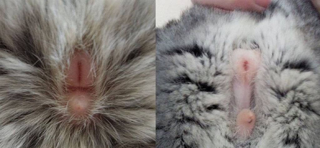 Для определения пола животное необходимо взять в руки, задрать хвостик и оценить расстояние между анусом и торчащим кончиком. У самки они располагаются рядом, а у самца — на небольшом расстоянии.