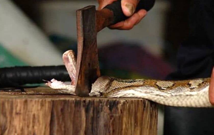 Это может показаться странным, но отрубленная змеиная голова ещё какое-то время представляет опасность. Она не только остаётся живой, но ещё и может укусить.