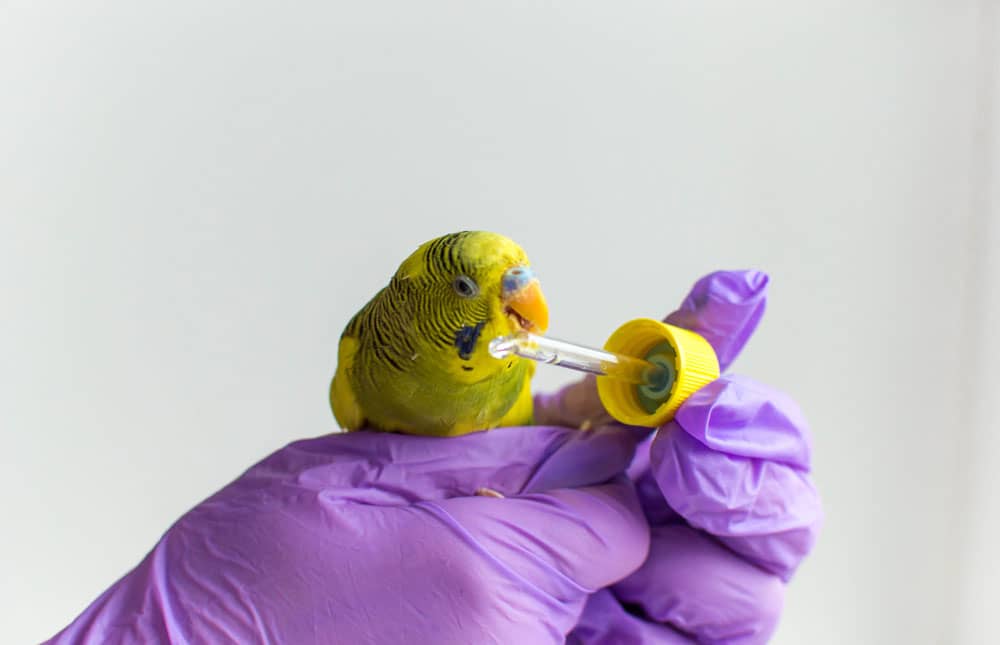 Когда попугайчик совсем слаб, то положение может спасти 5% инъекционная глюкоза в количестве 0,6 миллилитра. Её следует перемешать с физраствором или раствором Рингера. Жидкость надо вводить небольшими порциями по несколько раз в день. Употреблять для этой процедуры нужно или катетер, или пипетку. Также получившуюся жидкость можно вылить в поилку для попугая.