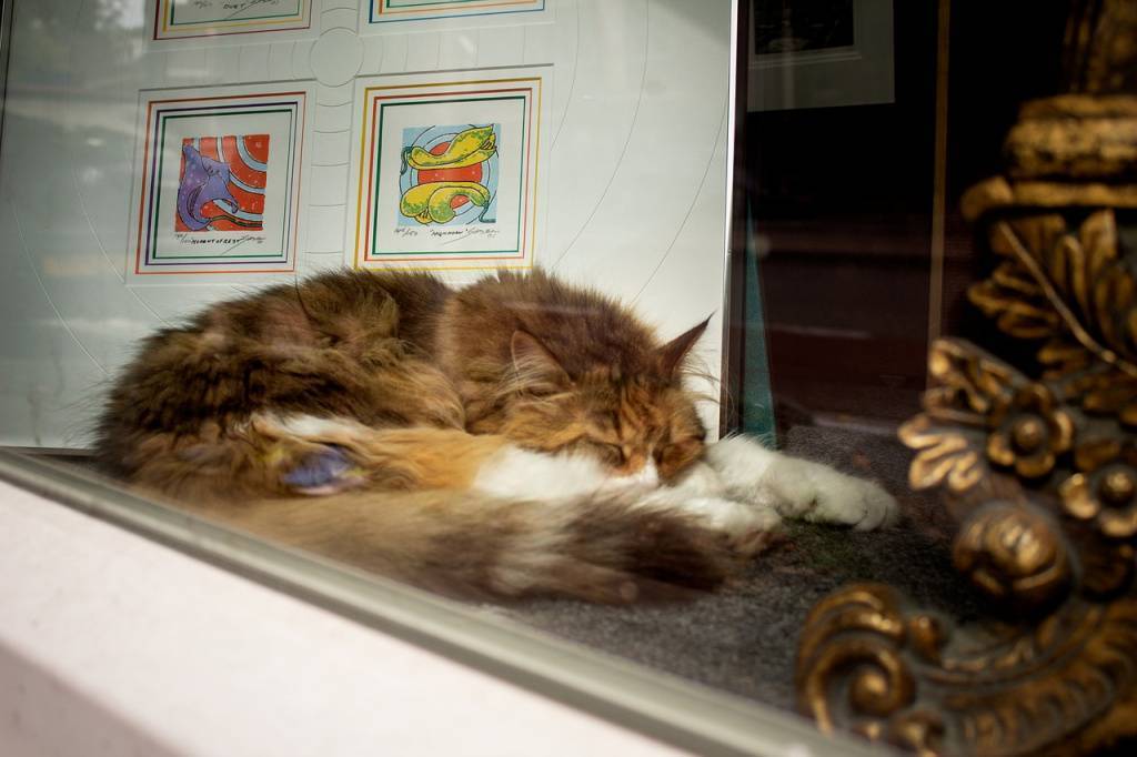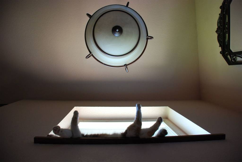 Говоря о том, где и почему спят кошки, нельзя не упомянуть шкафы и коробки. В первом случае усатых питомцев привлекает высота, а во втором – укромность
