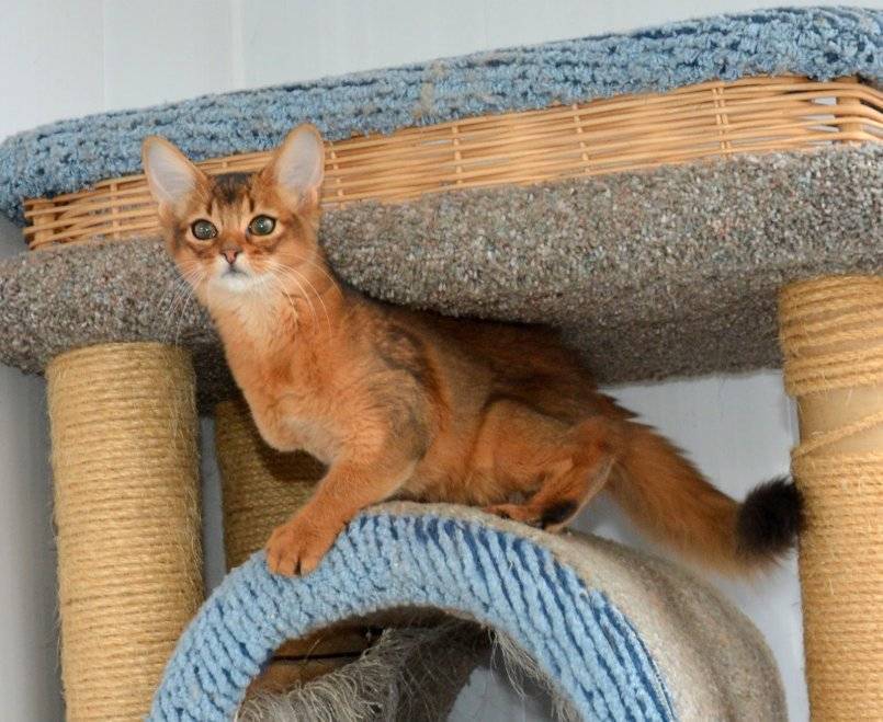 Активные кошки нуждаются в выгуле. Выгуливают сомалийского питомца на поводке. В жилище необходима установка кошачьего уголка с игрушками, лестницами, полками.