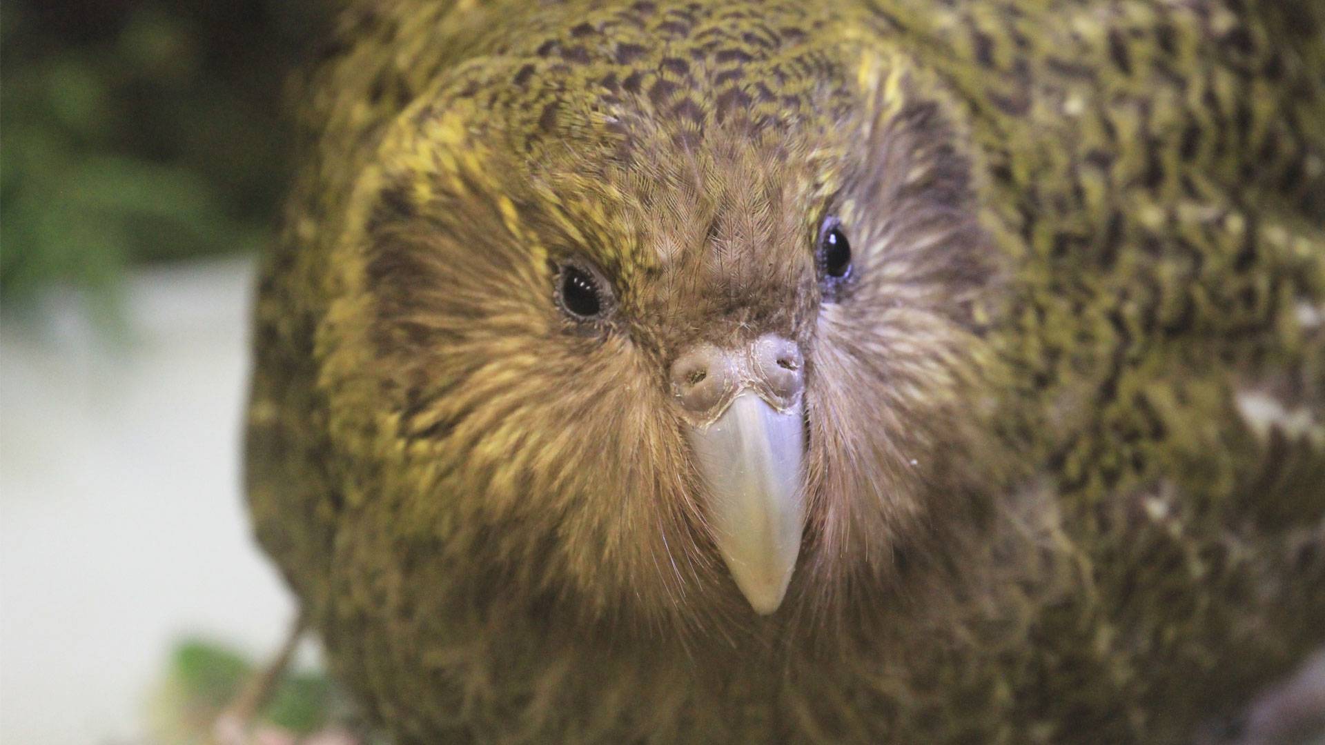На фото совиный попугай какапо