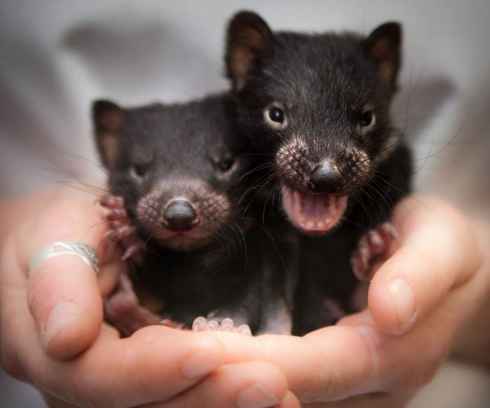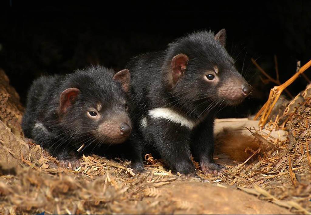 На фото детеныши тасманского дьявола