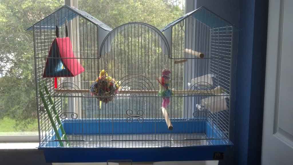 - Одного неразлучника можно селить в клетку размерами 35х60х60 см, если заводите пару — клетку покупайте попросторней.
