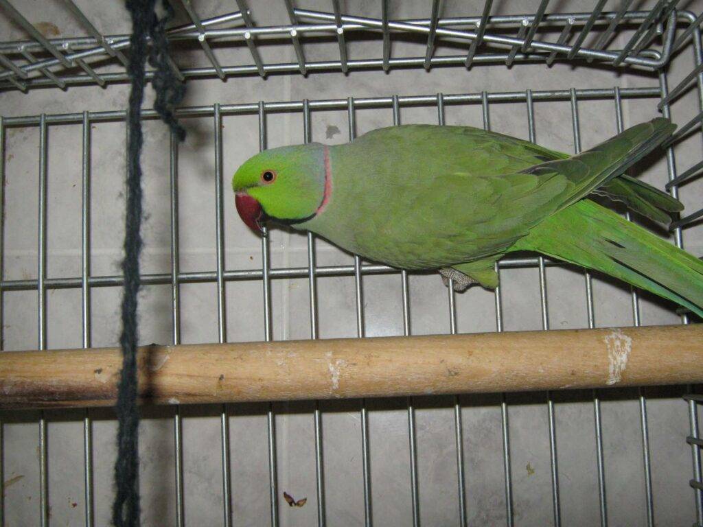 Ожереловый попугай — клетка