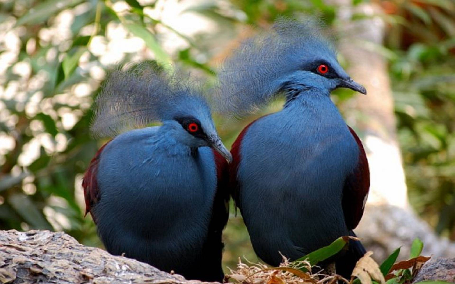 Любимое занятие венценосных голубей — покачивание на ветвях деревьев, лианах