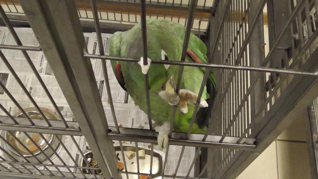 Попугай в домашних условиях не доставляет больших проблем. Для его содержания нужна просторная клетка 70 см Х 80 см, высотой не менее 60 см. Птица должна свободно расправлять в ней крылья, еще лучше – летать. Прутья из нержавеющей стали, а сама клетка с надежным запором. Дверца должна позволять легко, без нанесения травмы попугаю, доставать питомца из клетки.