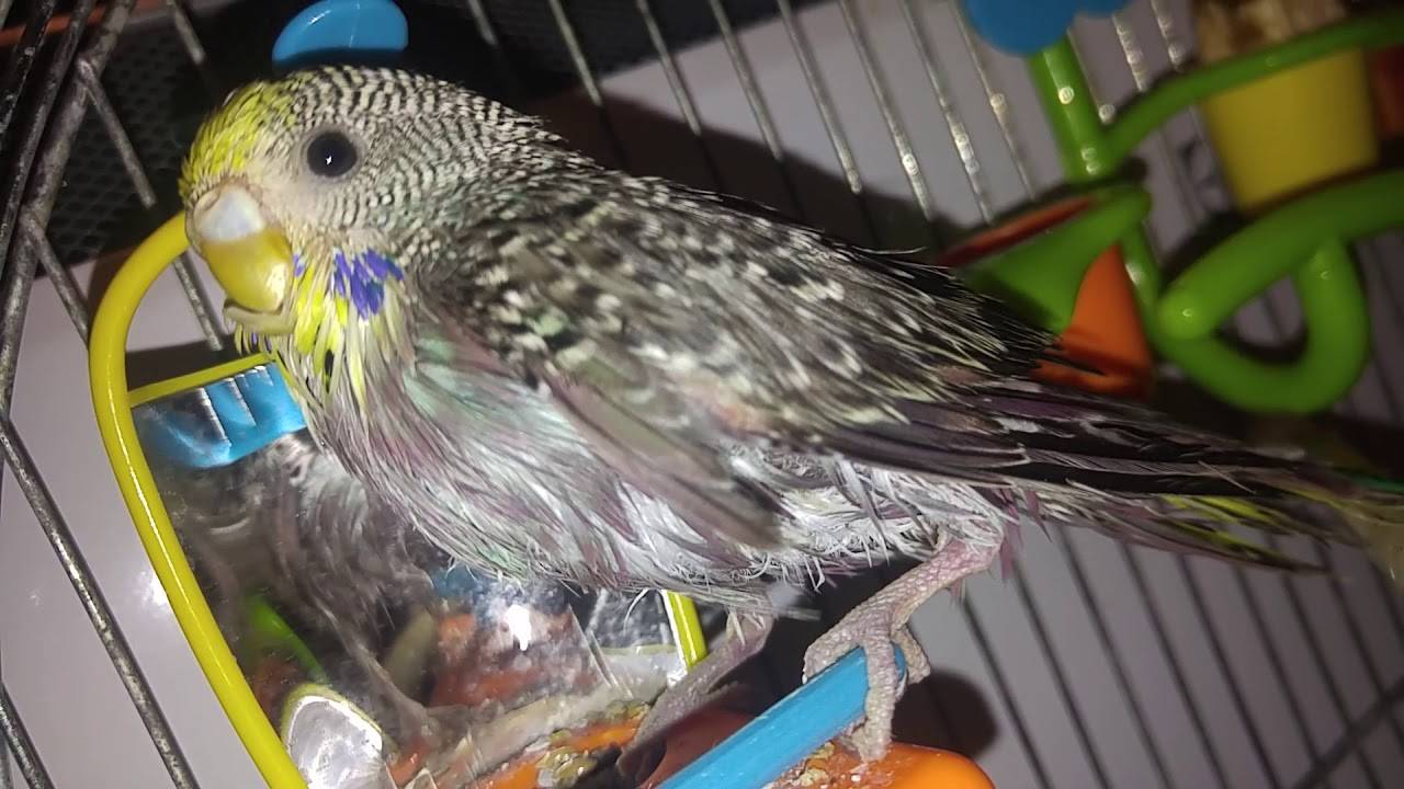 - Оперение попугая поднимается. Аппетит остается, но пища при поедании остается в клюве, потому что наш любимец ее не глотает. Возможно заметное выделение слюны.