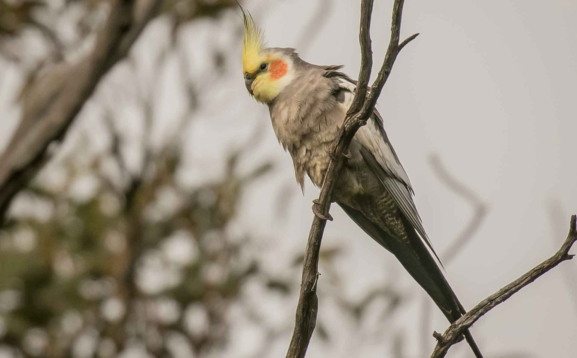 - Природный окрас попугаев — темно-серый с яркими желто-красными пятнами на голове, щеках. Хохолок желтый. Крупные маховые перья на крыльях белые. Это самый распространенный, естественный цвет. Отличия полов у попугаев корелла такого окраса заметны уже после первой линьки: у самцов щеки и хохолок намного ярче, тогда как самочки могут оставаться практически полностью серенькими. Дополнительно начинает темнеть клюв у мальчиков, но эта особенность указывает на то, что попугай совсем взрослый, старше полутора лет.