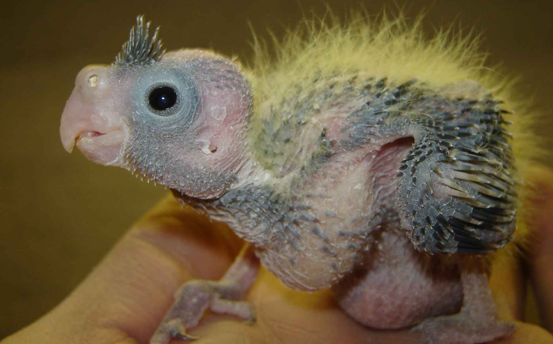 - Перья на хохолке редкие и их немного. Под ними можно обнаружить зачатки новых. У старых попугаев шевелюра густая, признаков роста перышек нет.