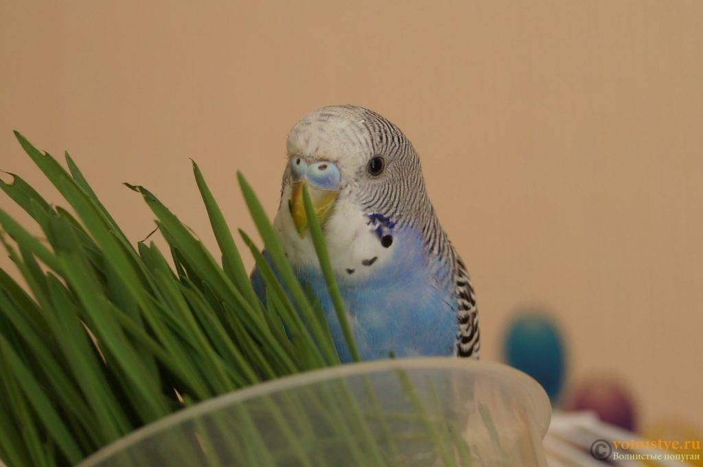 Отличным дополнением к питанию попугайчика будет пророщенный овес или пшеница. В зелёных ростках содержится богатый набор микроэлементов и витаминов.