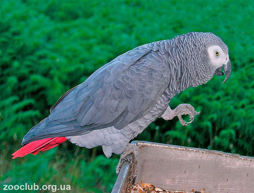 Пожалуй, жако – один из самых невзрачных видов больших говорящих попугаев. У него нет яркого оперения, как у попугая ара, поэтому ярких фото с жако не получится. Основной цвет перьев серый, может отклоняться к светлому или пепельному оттенку. Не зря второе название у выходца из жарких стран – африканский серый попугай. Цветовым акцентом в оперении птицы является ярко-красный хвост.